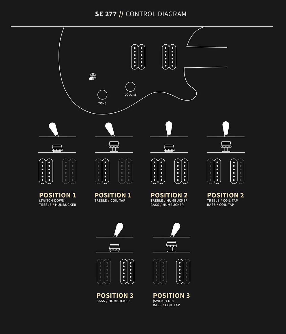 Whether you’re interested in rocking a clean tone, picking bass lines beneath higher melodies on one guitar, or chugging out the heaviest drop-tuned riffs, the SE 277 offers versatility in a reliable package for players looking to push the envelope. Ships tuned B to B.