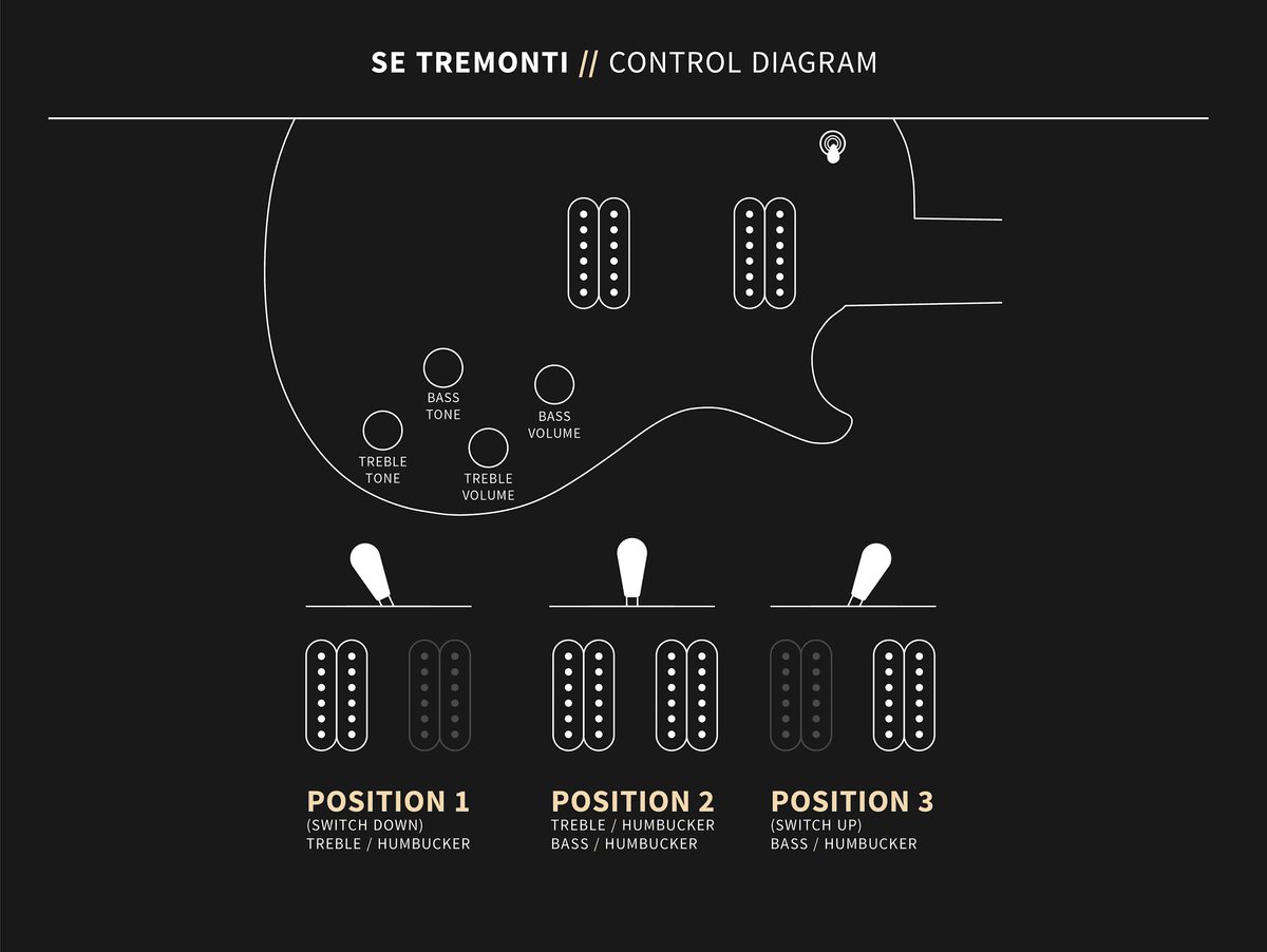 The SE Mark Tremonti provides a powerful voice and classic PRS aesthetic for players ready to rock. Through his solo work and as the lead guitarist of Alter Bridge and Creed, Tremonti has made a name for himself as a heavy rock player with melodic strength. The Tremonti "S" pickups are paired with dual volume and tone controls, offering the articulate aggression needed to cover Tremonti’s tonal demands. Additional appointments include a shallow violin carve with flame maple veneer, wide thin maple neck, and a trem-up route, making the SE Mark Tremonti fast to play and hard to put down.