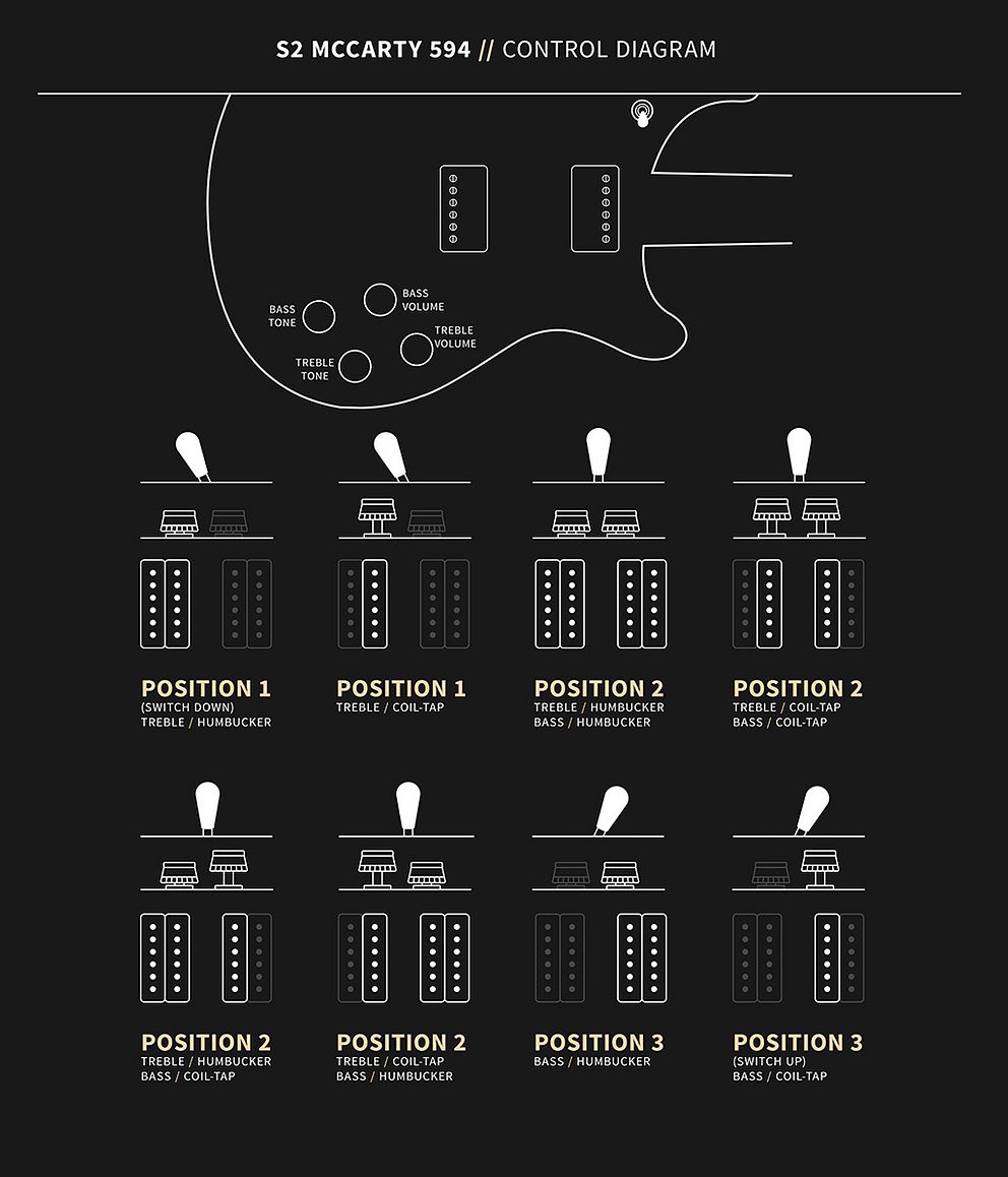 Loaded with Maryland, USA-made 58/15 LT pickups, the S2 McCarty 594 has a warm, vintage-inspired tone. Whether you are looking for authentic humbucking tones or nuanced, sweet single-coil sounds, the S2 McCarty 594 can seamlessly master both sonic territories thanks to both the pickups and dual volume and push/pull tone control layout. Designed to capture the heart of the McCarty family of instruments and stay true to the S2 Series spirit, the S2 McCarty 594 is a guitar your arsenal deserves.