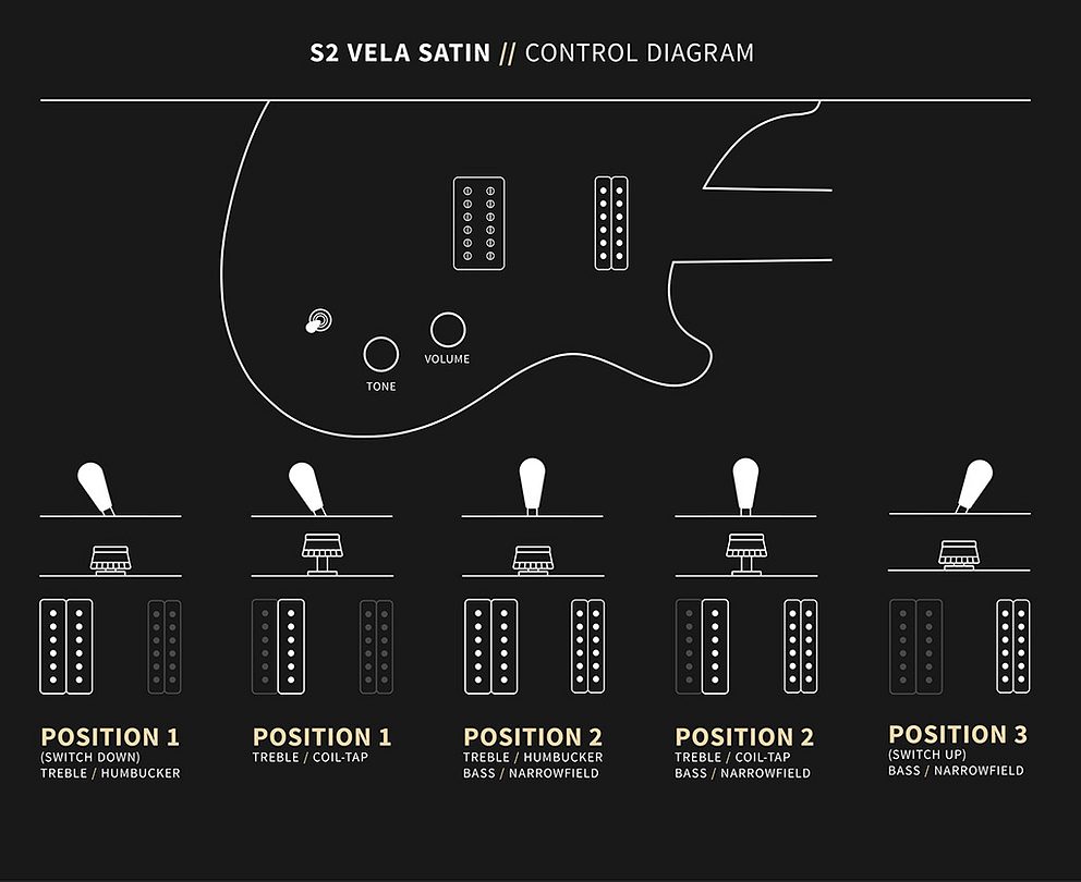 The S2 Vela Satin is a vintage-inspired guitar with loads of personality and tonal textures. The Vela boasts a contemporary offset body shape, and the addition of a thin, satin nitro finish provides added resonance and a truly addictive feel.